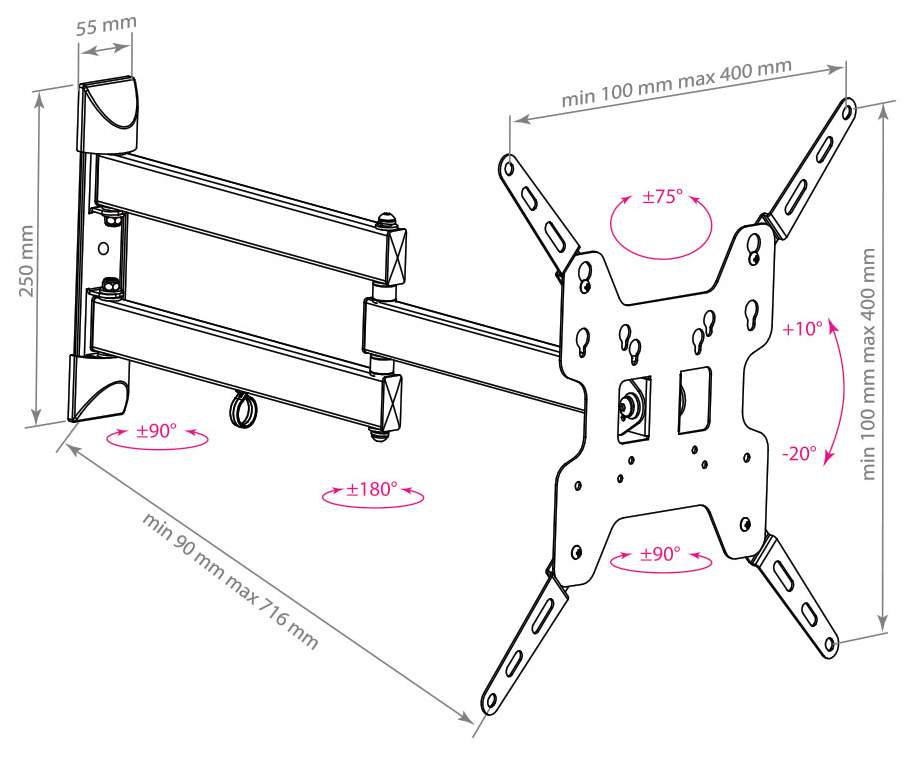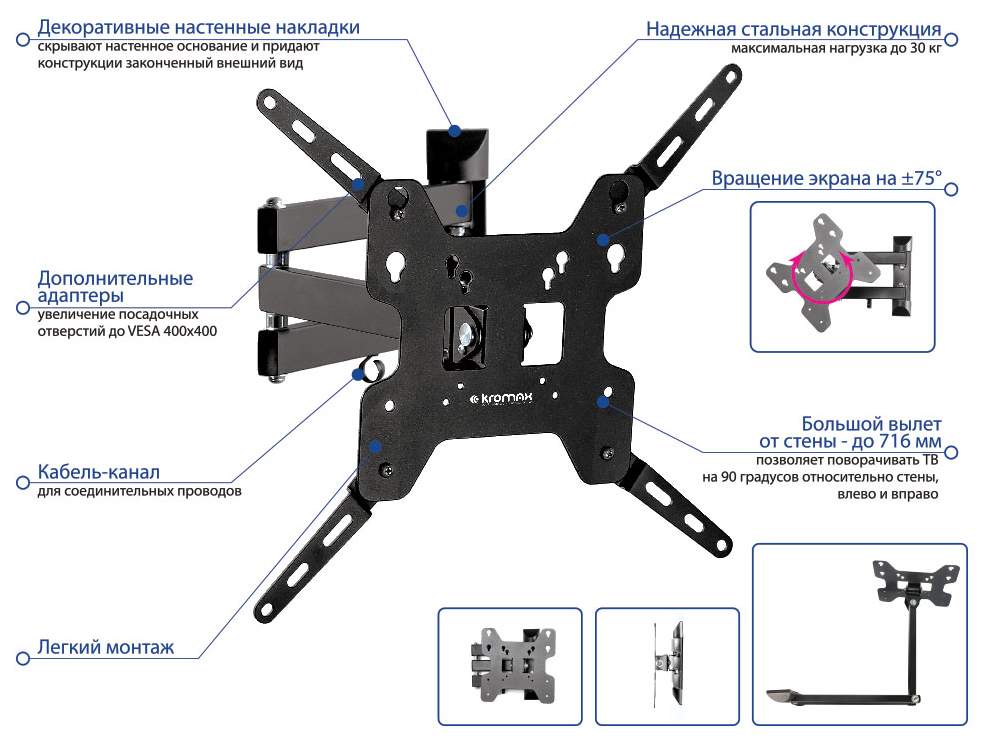 - Тип установки наклонно-поворотный; настенный