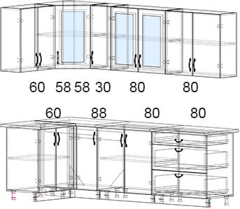 • Глубина нижних шкафов 60 см (46 см - глубина по корпусу)