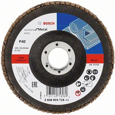 лепестковый 125х22.2 мм K40 плоский Standard for metal 2608603716