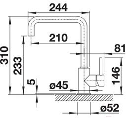 • Высота излива 233 мм