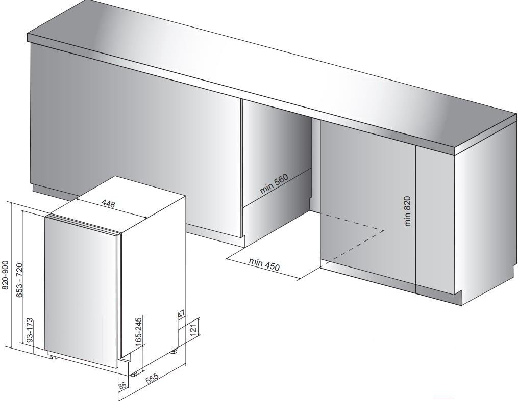 • Высота ниши для встраивания 82 - 90 см