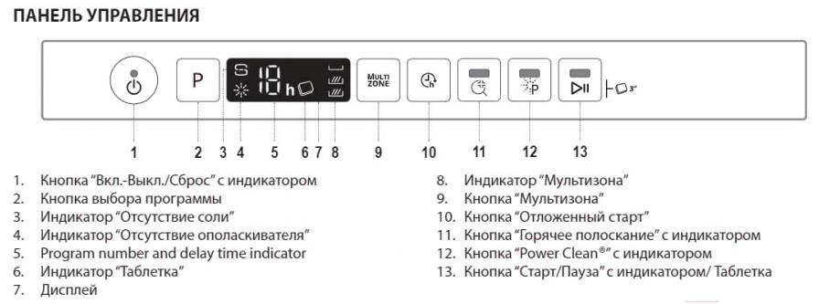 • Индикатор отсутствия ополаскивателя да