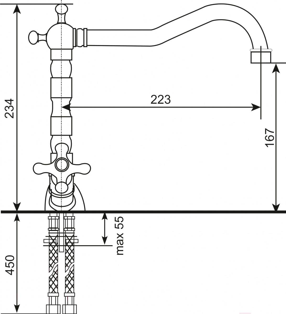 - Длина (вылет) излива 223 мм