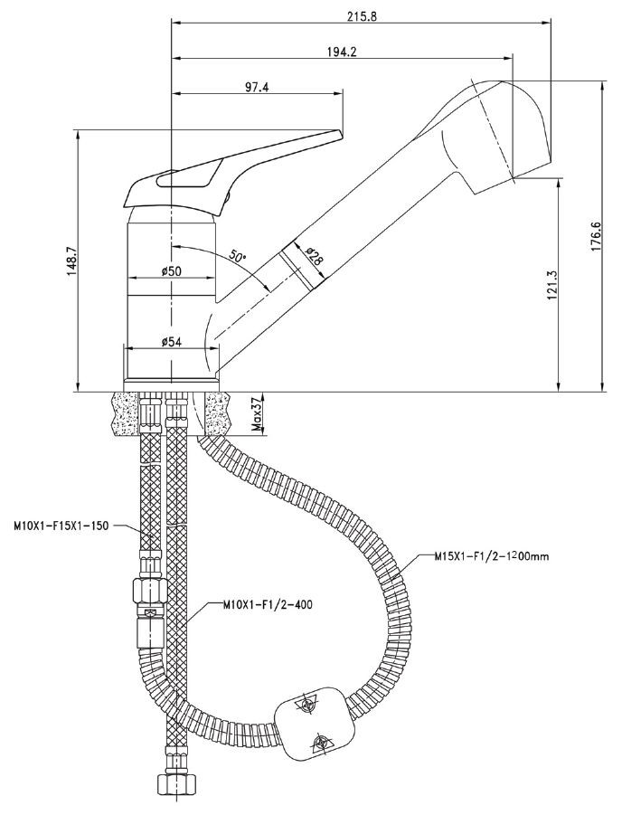 - Выдвижной/гибкий излив да