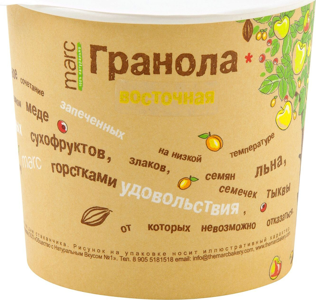 - Состав: Запеченые хлопья 5 злаков (овсяные,пшеничные, ржаные, ячменные, хлопья гречневые), пшено, кунжут, клетчатка зародыша пшеницы, мед, оливковое масло, семечки подсолнечника и тыквы, изюм, семена льна, курага, миндаль, корица молотая, соль морская, мускатный орех