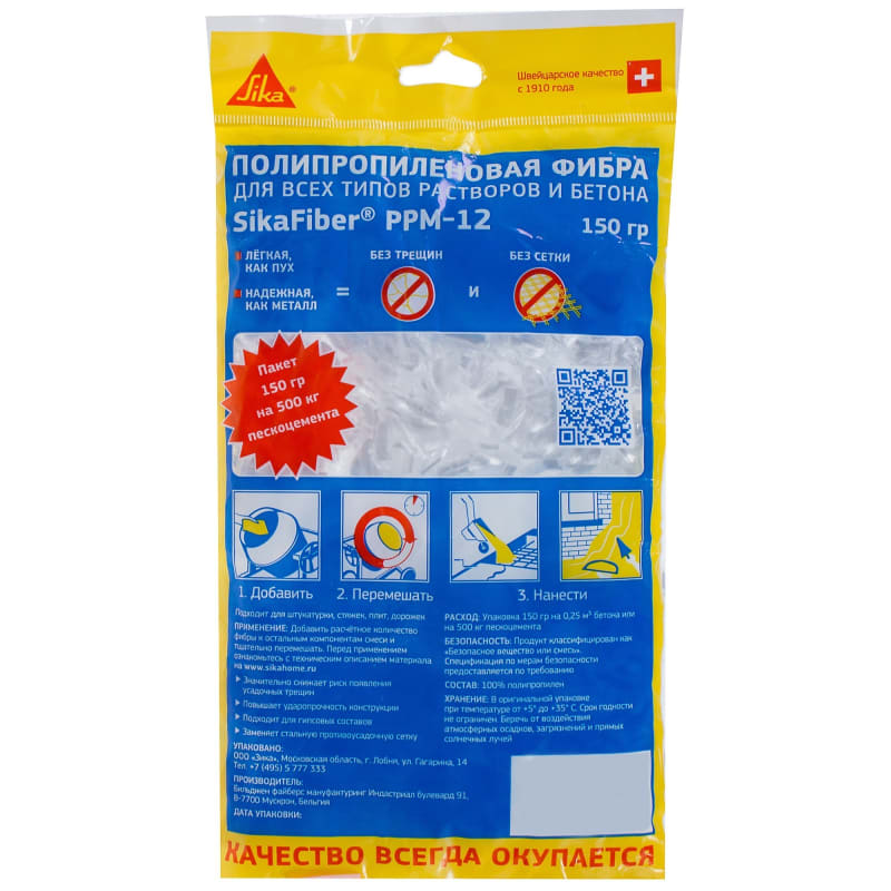Фибра для бетонов и растворов Sika SikaFiber PPM-12, 150 г