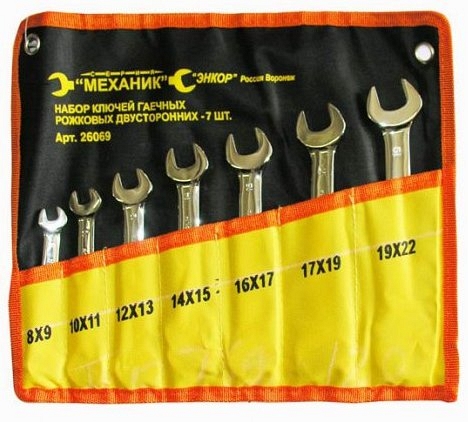 Набор рожковых ключей ЭНКОР 26069 Используются для сборки и разборки резьбовых соединений гайки или болта