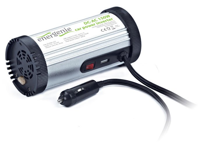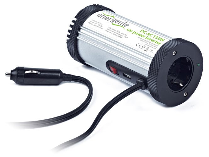 Входное напряжение: 12В; выходное напряжение 220В В; номинальная мощность 150 Вт; пиковая мощность 300 Вт; способ подключения: к прикуривателю; USB-порт; количество розеток 1.