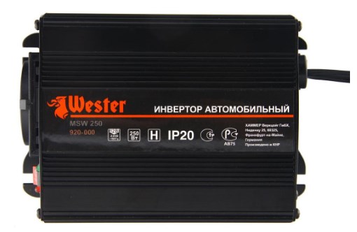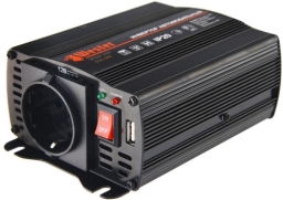 Входное напряжение: 12В; выходное напряжение 220В В; номинальная мощность 250 Вт; пиковая мощность 500 Вт; способ подключения: к прикуривателю; USB-порт; количество розеток 1.