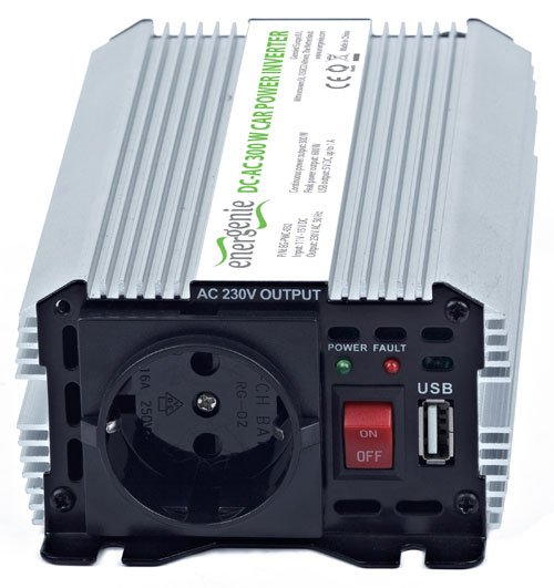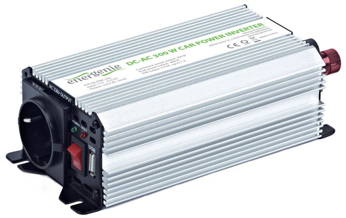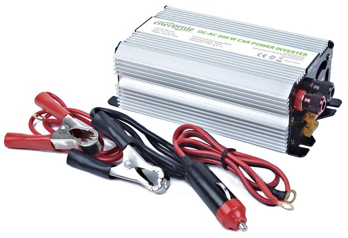 Входное напряжение: 12В; выходное напряжение 220В В; номинальная мощность 300 Вт; пиковая мощность 600 Вт; способ подключения: к прикуривателю, к клеммам АКБ; USB-порт; количество розеток 1.