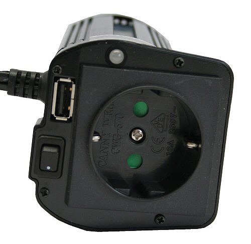 Входное напряжение: 12В; выходное напряжение 220В В; номинальная мощность 140 Вт; пиковая мощность 280 Вт; способ подключения: к прикуривателю; USB-порт; количество розеток 1.