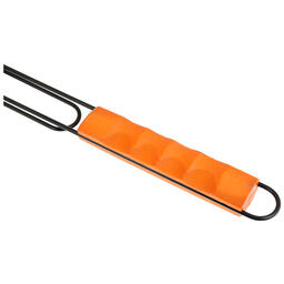 Высококачественная жаропрочная сталь. Эргономичная рукоятка. Широкое кольцо-фиксатор. Конструкция объемной решетки гриль позволяет фиксировать верхнюю плоскость на разной высоте, поэтому на решетке можно запекать продукты различной толщины — от стейков до куриных окорочков, не передавливая их.