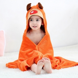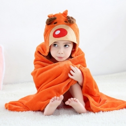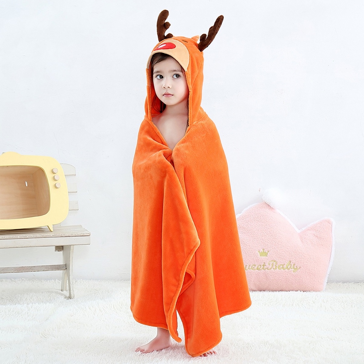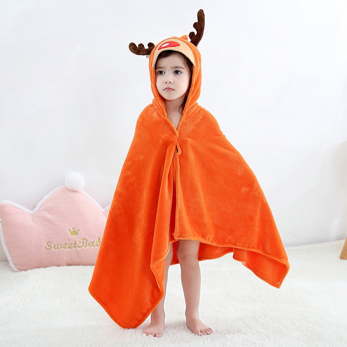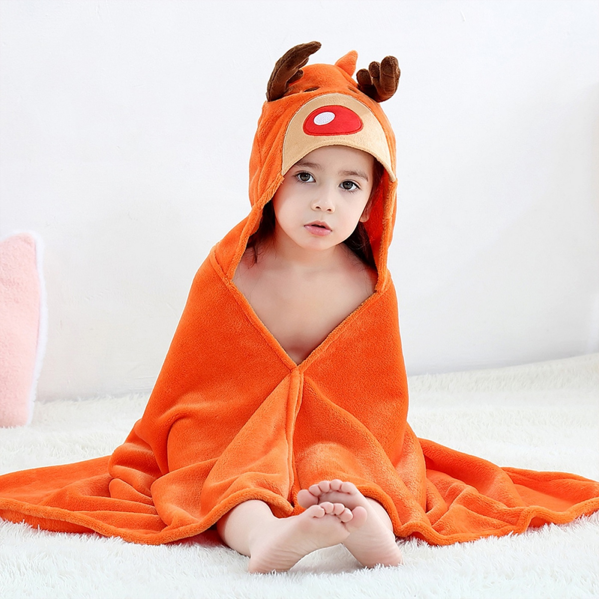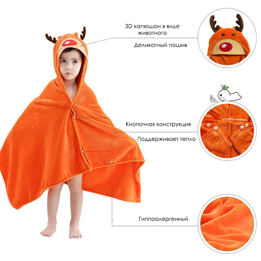 Полотенце с капюшоном олененок из мягкого кораллового флиса, оранжевое, 60х120 см