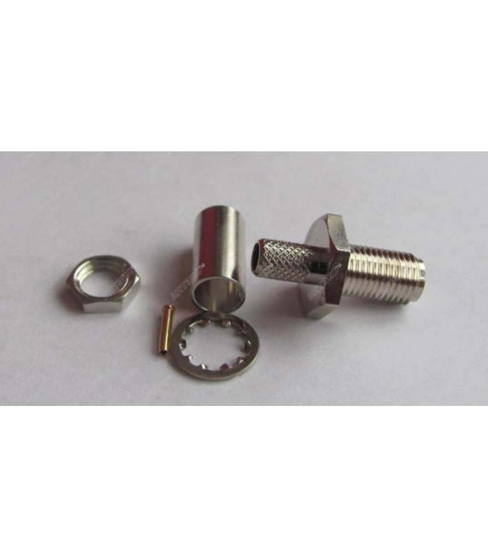 Оригинальный ВЧ разъем серии SMA, S-231F NGT (никелированный корпус, позолоченный центральный контакт, тефлоновый диэлектрик), мама (розетка), приборно-кабельный с гайкой, обжимной, для коаксиального кабеля RG-58 /U.