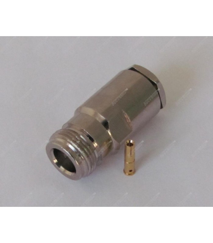 ВЧ коаксиальный разъем N серии, мама (розетка) N-212F. Нужен для радиочастотного кабеля RG-58 A/U, RG-58 C/U, разъем прижимного типа.