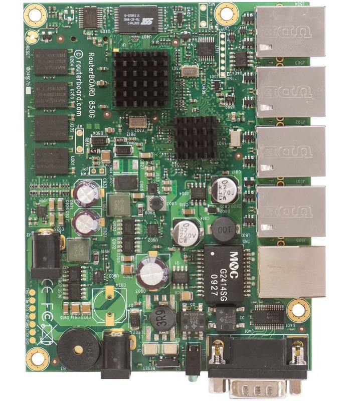 Mikrotik RouterBOARD 850Gx2 - новый производительный маршрутизатор с 5 портами Gigabit Ethernet 10/100/1000M с новым быстрым двухъядерным процессором PowerPC 500МГц и 512 мегабайтами оперативной памяти и слотом для карты памяти microSD .