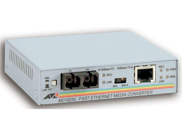 AT-MC102XL Allied Telesis медиаконвертер оптический 100-FX (SC) MMF 1310 до 2 км, 1 x FE RJ-45 AT-MC102XL-20
