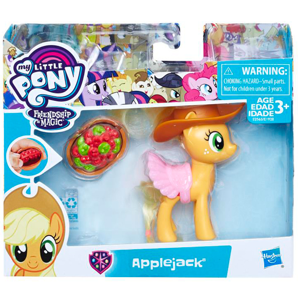 Лошадка-фермер по имени Эплджек. Героиня очень любит свою работу и ответственно относится к ней. А еще она всегда готова прийти на помощь своим друзьям и выполняет данные ею обещания. Традиционно персонаж предстает в желтом цвете, на голове у нее ковбойская шляпа, а на спинке кокетливое розовое седло. Также в наборе с пони идет корзинка с фруктами — это урожай, который собрала Эплджек на своей ферме.