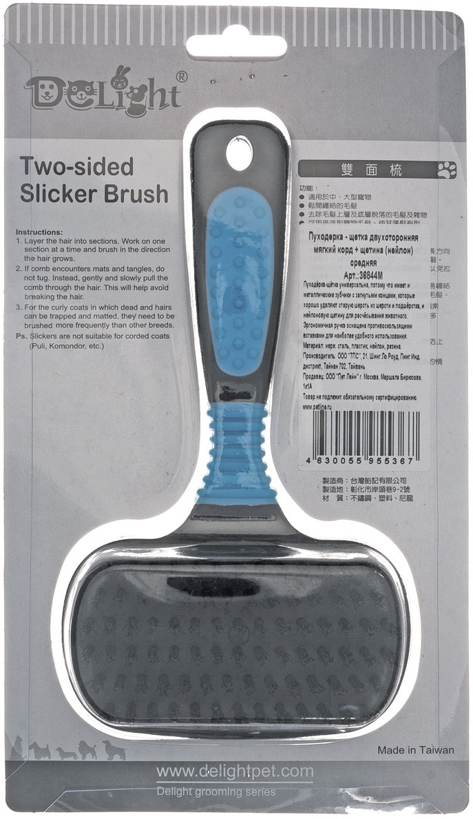 Пуходерка-щетка DeLight, двухсторонняя, мягкий корд, средняя