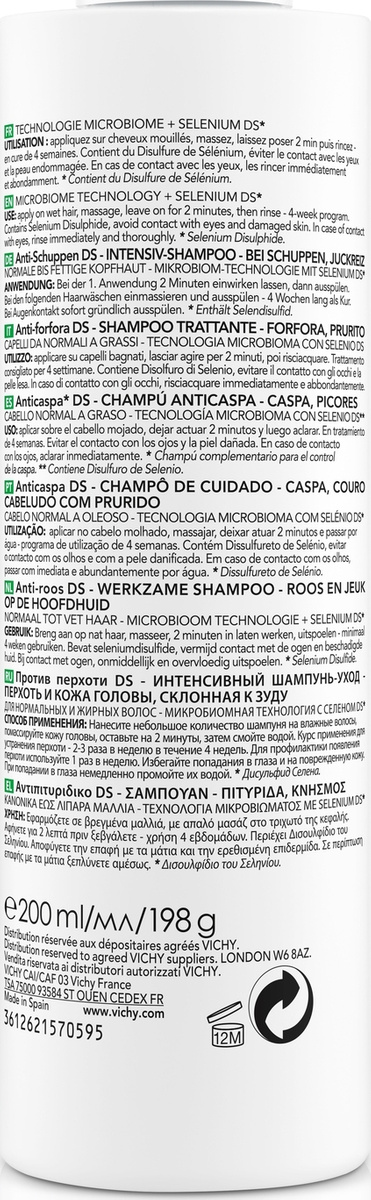 Vichy Набор Dercos Шампунь-уход против перхоти женский, регулирующий, для жирных волос, 2 х 200 мл