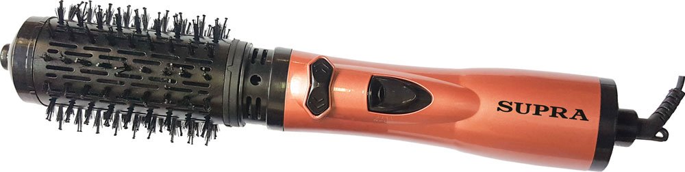 Фен-расческа мощностью 1000 Вт; количество скоростей 2; количество насадок 2; функции: холодный обдув; дополнительно: вращающийся шнур, кнопка снятия насадок, петелька для подвешивания.