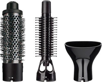 Фен-расческа мощностью 1200 Вт; количество температурных режимов 2; количество скоростей 2; количество насадок 3; функции: холодный обдув, ионизация; дополнительно: петелька для подвешивания.