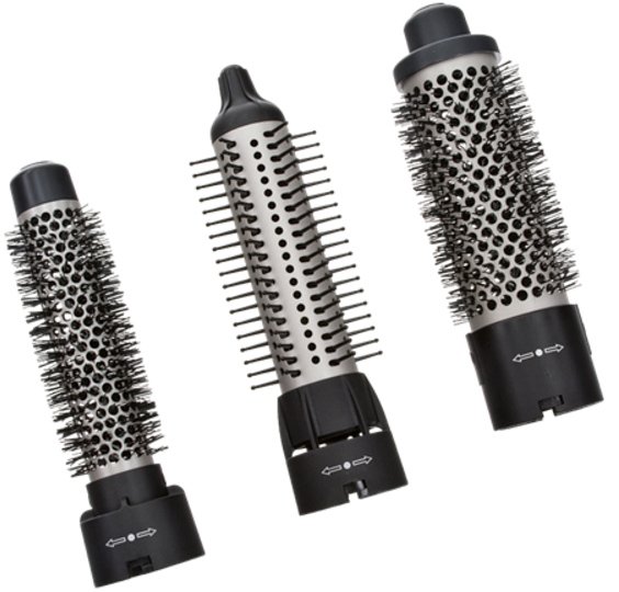 Фен-расческа мощностью 1100 Вт; количество температурных режимов 2; количество скоростей 2; количество насадок 3; функции: холодный обдув; дополнительно: петелька для подвешивания, вращающийся шнур.