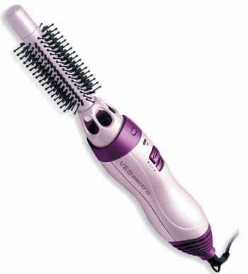 Фен-расческа мощностью 1000 Вт; количество температурных режимов 2; количество скоростей 2; количество насадок 3; функции: холодный обдув, ионизация; дополнительно: петелька для подвешивания, вращающийся шнур.