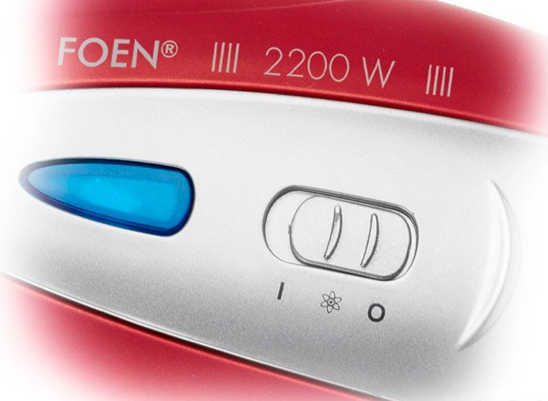 Бытовой, мощностью 2200 Вт, кол-во режимов интенсивности воздушного потока 2, кол-во режимов нагрева воздушного потока 3, независимая регулировка нагрева и воздушного потока, подача холодного воздуха, функция ионизации, насадки в комплекте: диффузор, концентратор, дополнительно: петелька для подвешивания.