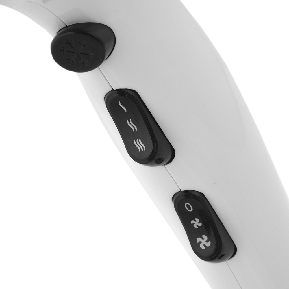 Бытовой фен, мощностью 2200 Вт, кол-во режимов интенсивности воздушного потока 2, кол-во режимов нагрева воздушного потока 3, независимая регулировка нагрева и воздушного потока, подача холодного воздуха, функция ионизации, насадки в комплекте: концентратор, петля для подвешивания.