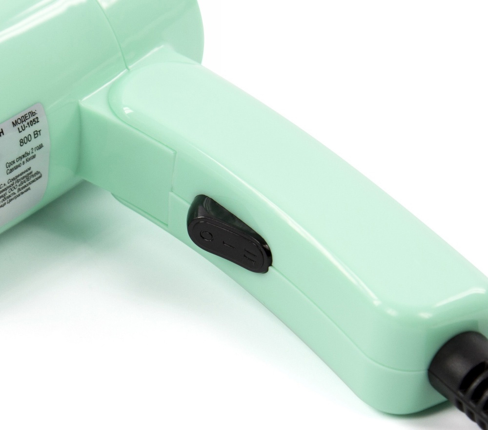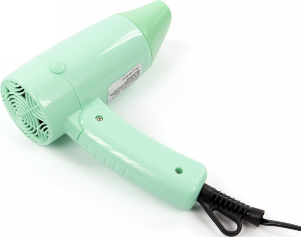 Дорожный фен, мощностью 800 Вт, кол-во режимов интенсивности воздушного потока 2, насадки в комплекте: концентратор, петля для подвешивания.