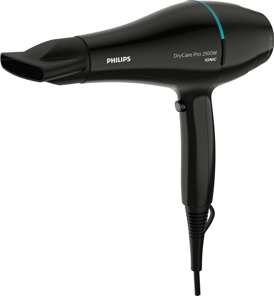 Бытовой фен; мощностью 2100 Вт; кол-во режимов интенсивности воздушного потока 2; кол-во режимов нагрева воздушного потока 3; независимая регулировка нагрева и воздушного потока; подача холодного воздуха; функция ионизации; насадки в комплекте: концентратор; петля для подвешивания.