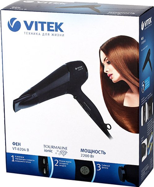 Бытовой фен; мощностью 2200 Вт; кол-во режимов интенсивности воздушного потока 2; кол-во режимов нагрева воздушного потока 3; независимая регулировка нагрева и воздушного потока; подача холодного воздуха; функция ионизации; насадки в комплекте: концентратор; петля для подвешивания.