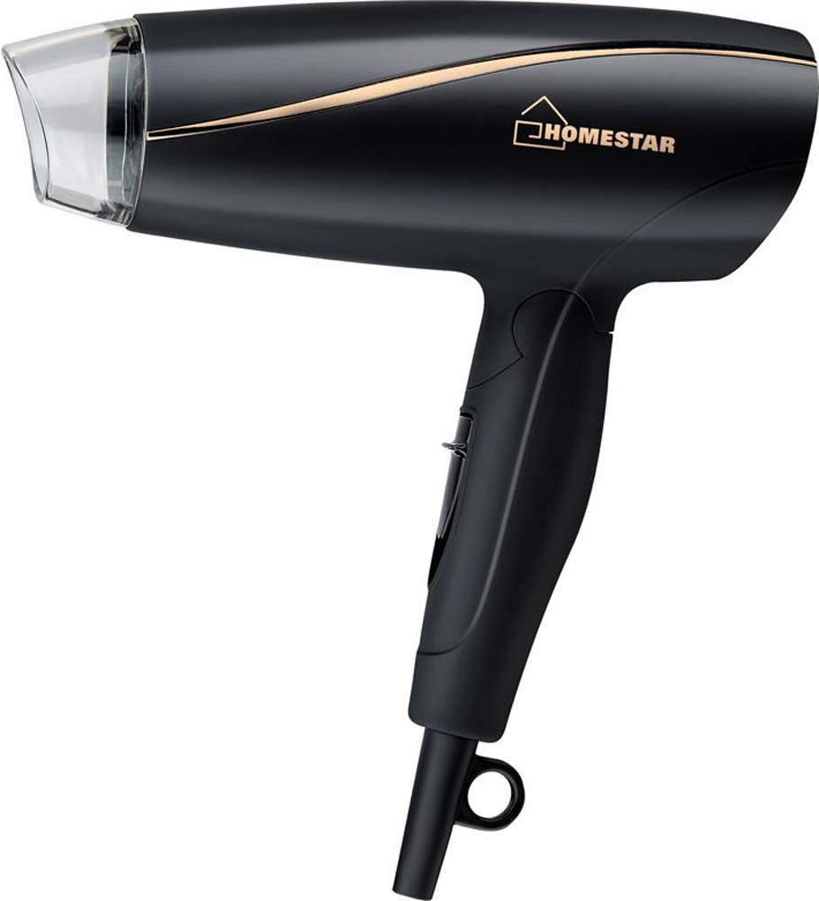 Дорожный фен; мощностью 1500 Вт; кол-во режимов интенсивности воздушного потока 2; подача холодного воздуха; насадки в комплекте: концентратор; петля для подвешивания.