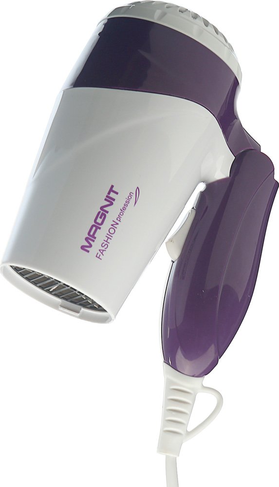 Дорожный фен; мощностью 1600 Вт; кол-во режимов интенсивности воздушного потока 2; насадки в комплекте: концентратор; петля для подвешивания.
