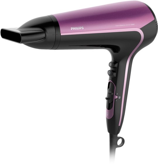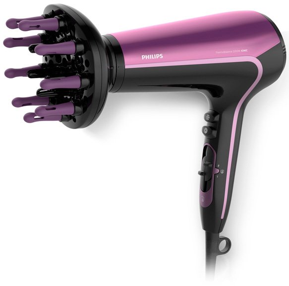 Бытовой фен; мощностью 2200 Вт; кол-во режимов интенсивности воздушного потока 2; кол-во режимов нагрева воздушного потока 3; независимая регулировка нагрева и воздушного потока; подача холодного воздуха; функция ионизации; насадки в комплекте: концентратор, диффузор; петля для подвешивания.
