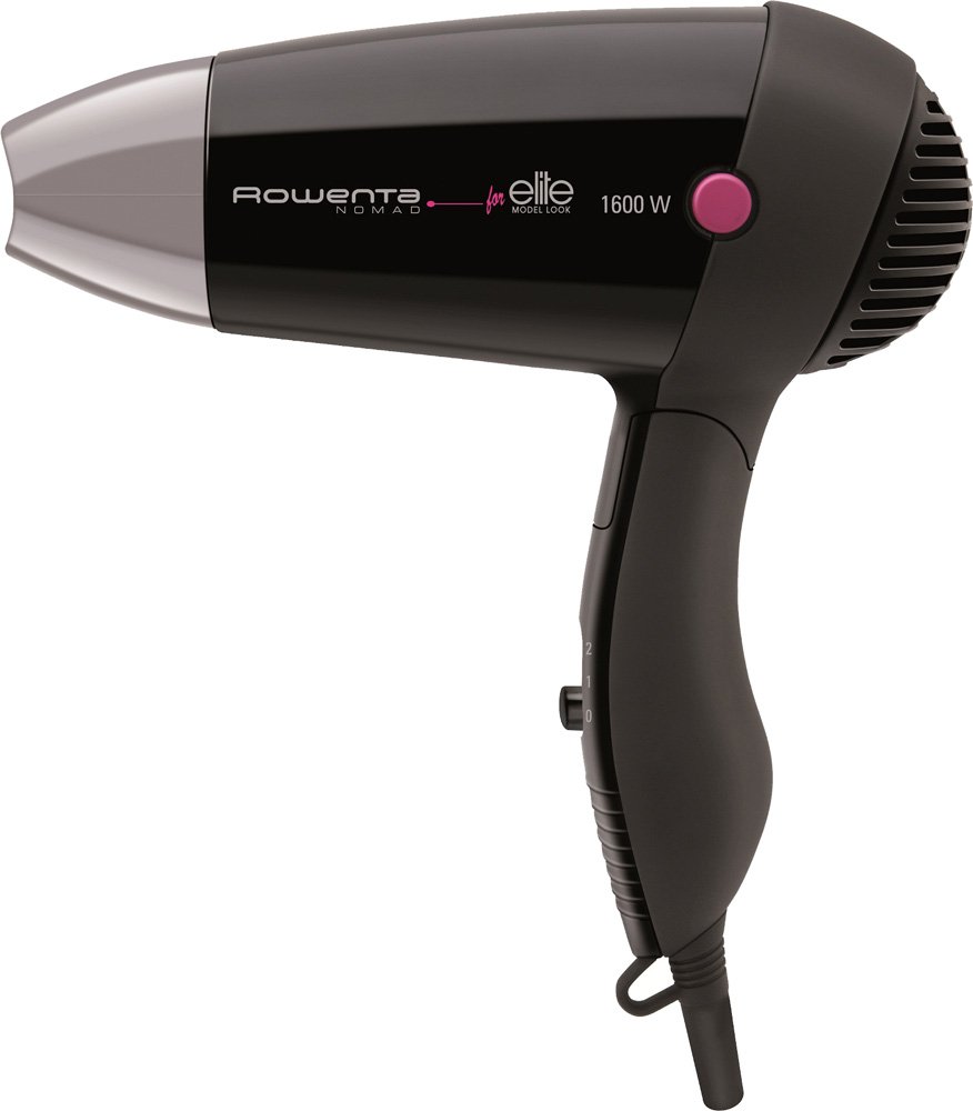 Дорожный фен; мощностью 1400 Вт; кол-во режимов интенсивности воздушного потока 2; кол-во режимов нагрева воздушного потока 2; насадки в комплекте: концентратор; петля для подвешивания.