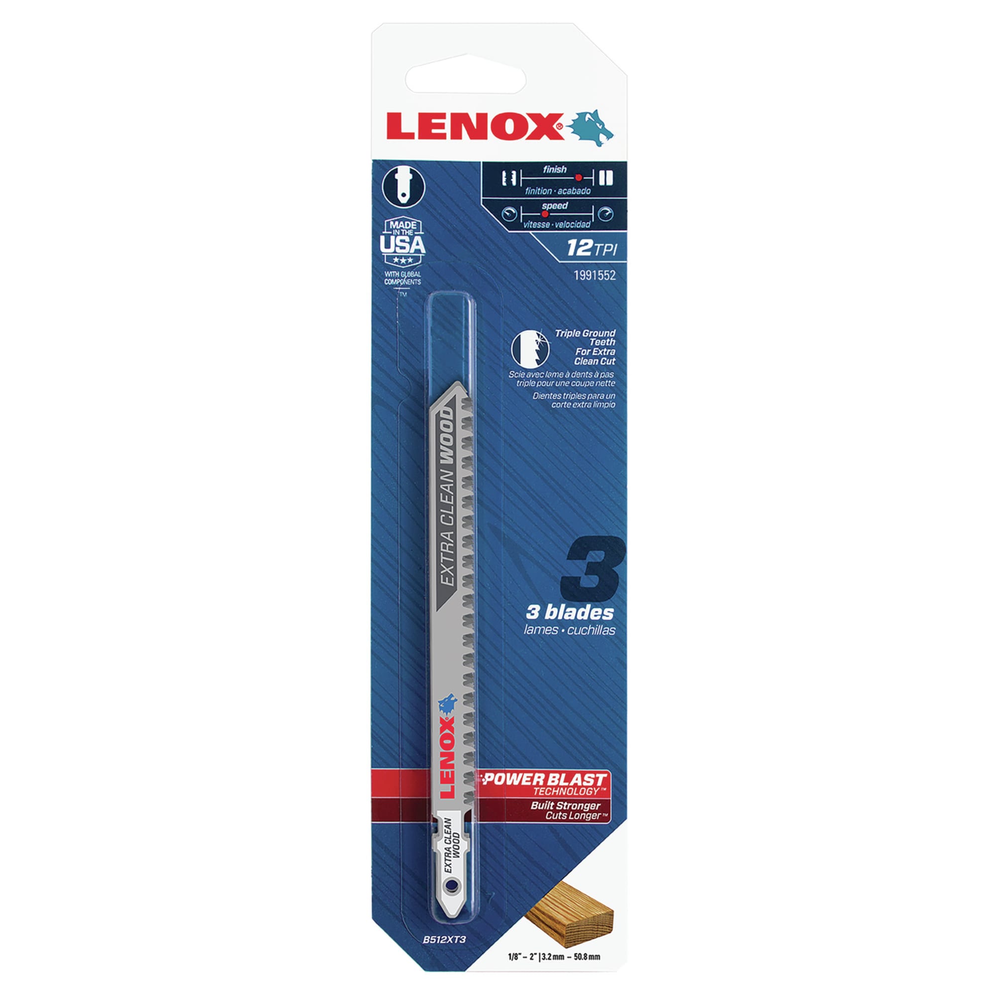 Пилки для лобзика по твёрдой древесине B512XT Lenox, 3 шт.