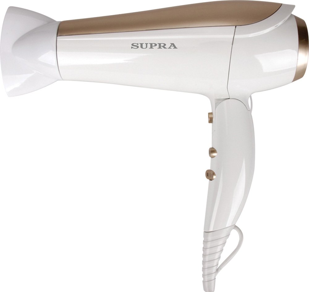 Дорожный фен; мощностью 2200 Вт; кол-во режимов интенсивности воздушного потока 2; кол-во режимов нагрева воздушного потока 3; независимая регулировка нагрева и воздушного потока; подача холодного воздуха; функция ионизации; насадки в комплекте: концентратор; петля для подвешивания.