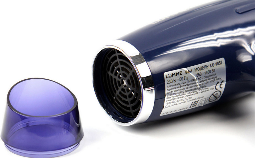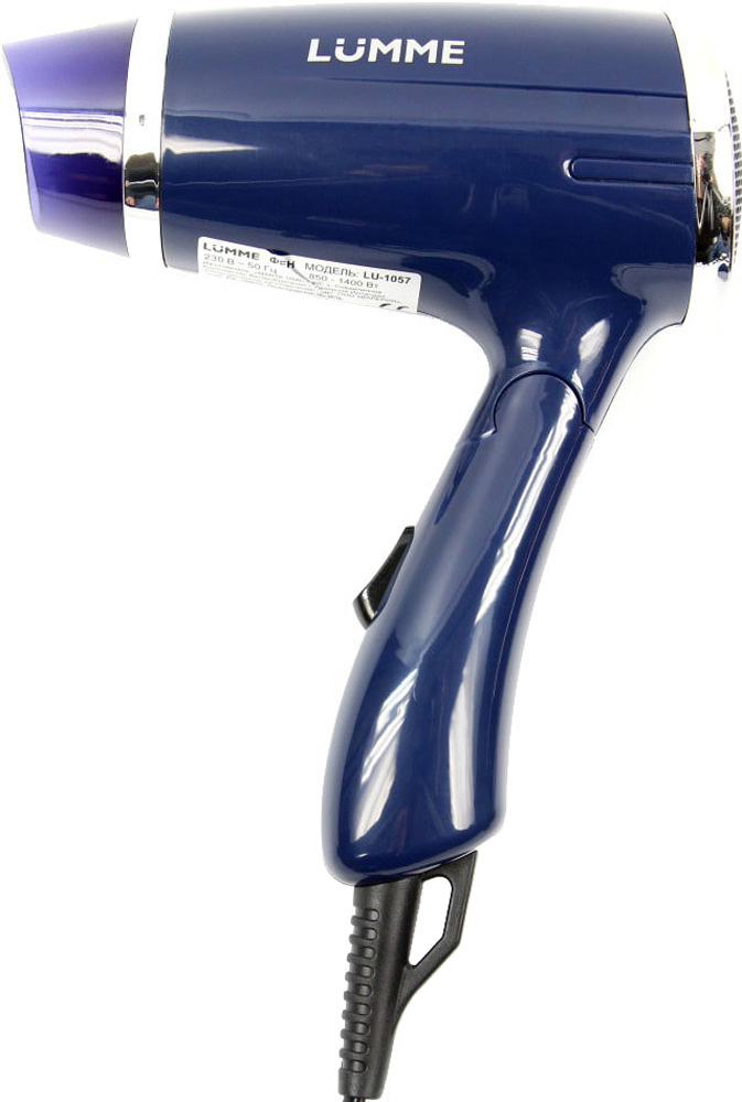 Бытовой фен, мощностью 1400 Вт, кол-во режимов интенсивности воздушного потока 2, насадки в комплекте: концентратор, петля для подвешивания.