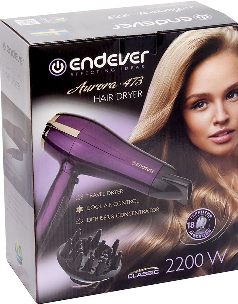 Дорожный фен, мощностью 2200 Вт, кол-во режимов интенсивности воздушного потока 2, кол-во режимов нагрева воздушного потока 3, подача холодного воздуха, насадки в комплекте: диффузор, концентратор, петля для подвешивания.