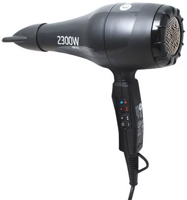 Бытовой фен, мощностью 2300 Вт, кол-во режимов интенсивности воздушного потока 2, кол-во режимов нагрева воздушного потока 3, независимая регулировка нагрева и воздушного потока, подача холодного воздуха, насадки в комплекте: концентратор, петля для подвешивания.