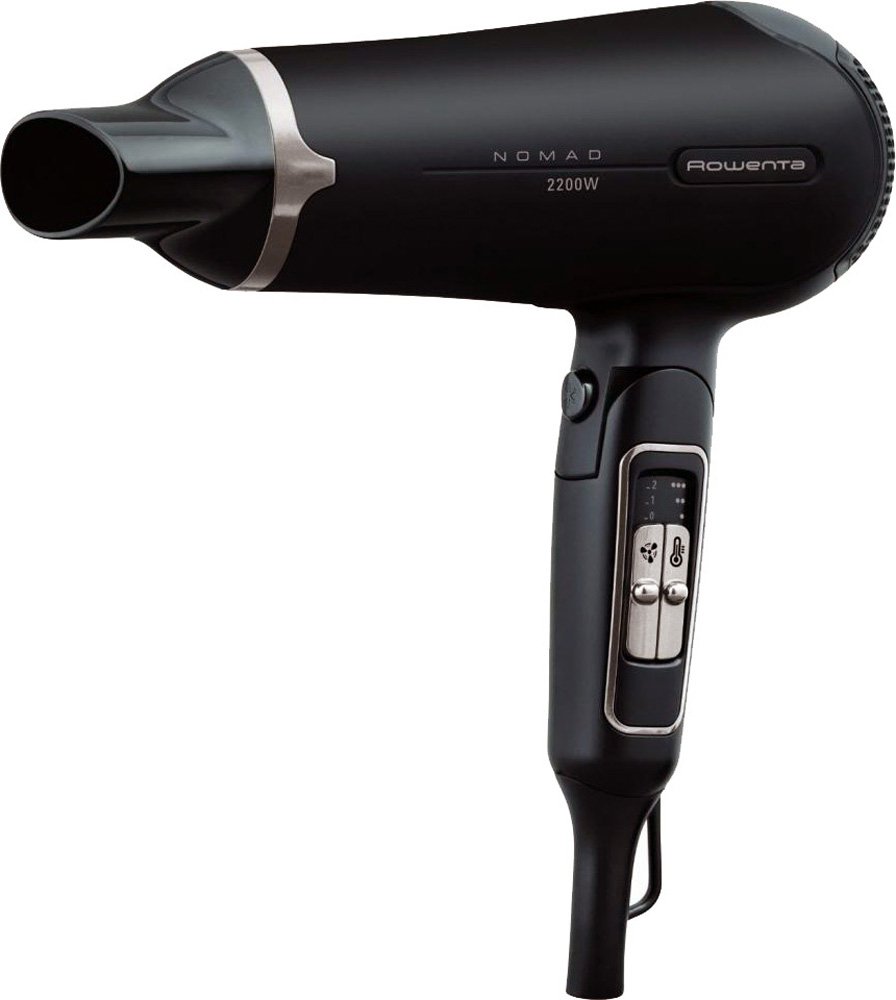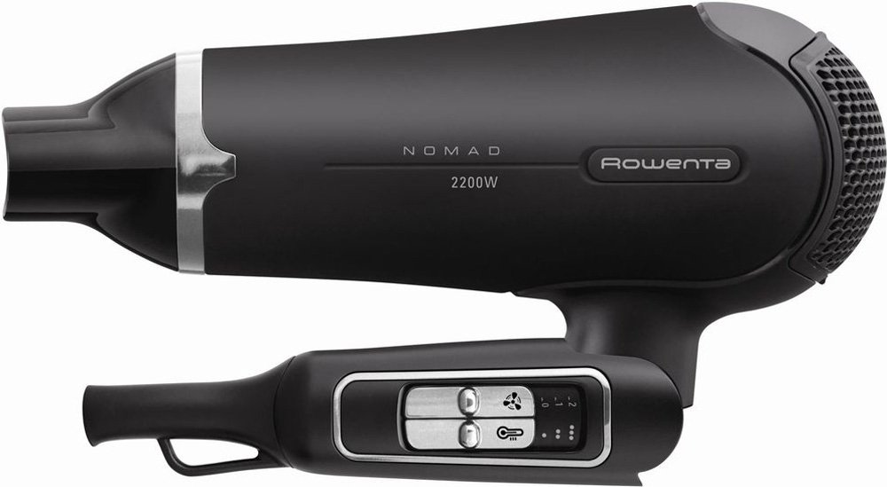 Дорожный фен; мощностью 2200 Вт; кол-во режимов интенсивности воздушного потока 2; кол-во режимов нагрева воздушного потока 3; независимая регулировка нагрева и воздушного потока; подача холодного воздуха; функция ионизации; насадки в комплекте: концентратор; петля для подвешивания.
