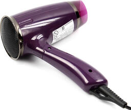Дорожный фен, мощностью 1400 Вт, кол-во режимов интенсивности воздушного потока 2, насадки в комплекте: концентратор, петля для подвешивания.