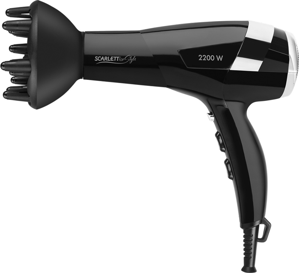 Бытовой фен; мощностью 2200 Вт; кол-во режимов интенсивности воздушного потока 2; кол-во режимов нагрева воздушного потока 3; независимая регулировка нагрева и воздушного потока; подача холодного воздуха; функция ионизации; насадки в комплекте: диффузор, концентратор; петля для подвешивания.