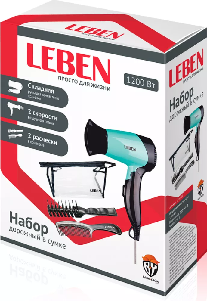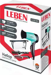 Дорожный, мощностью 1200 Вт, кол-во режимов интенсивности воздушного потока 2, насадки в комплекте: концентратор, дополнительно: петелька для подвешивания, сумочка, складная ручка.