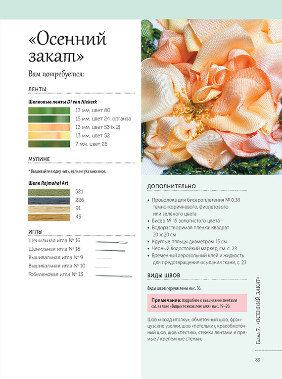 Розы из шелковых лент и органзы. Объемная вышивка | ван Никерк Ди