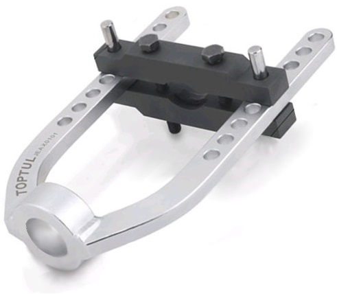 Профессиональный инструмент предназначен для работы с переднеприводными автомобилями. Конструкция инструмента содержит широкую раму и оснащена специальными губками зажимной формы. Съемник характеризуется высокой прочностью и снижает риск повреждения обрабатываемой детали.