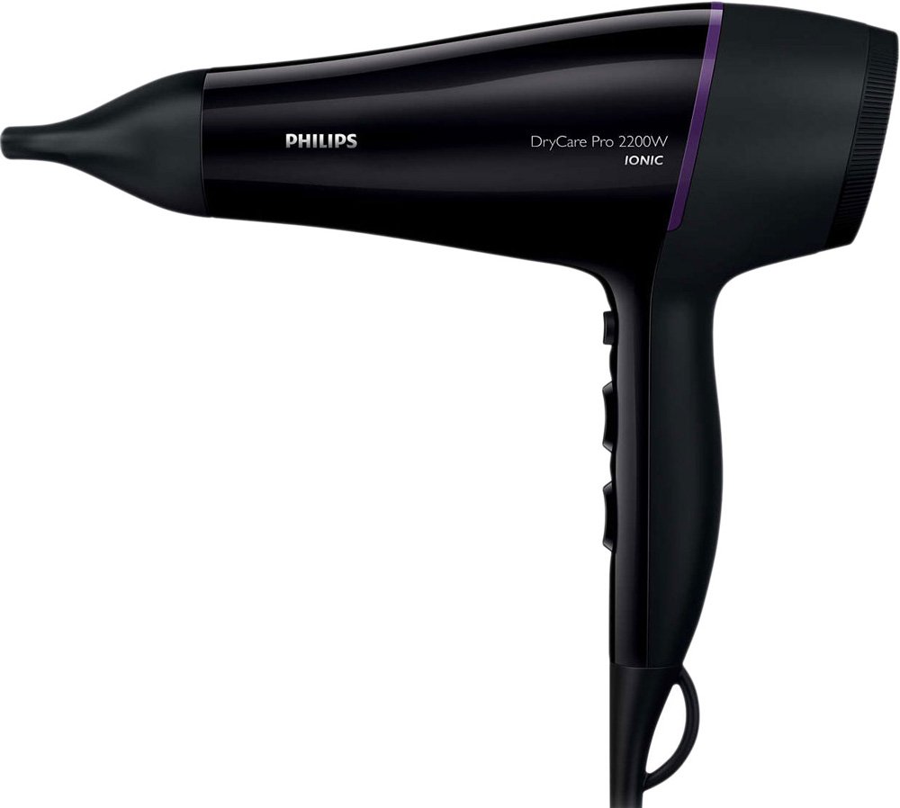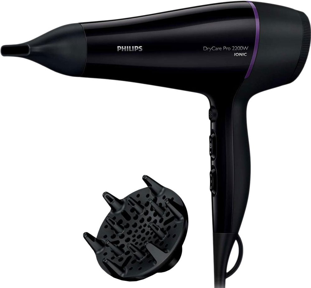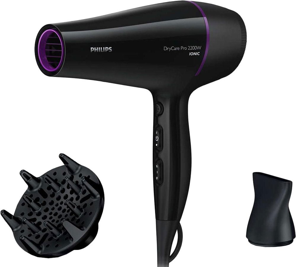 Бытовой фен; мощностью 2200 Вт; кол-во режимов интенсивности воздушного потока 2; кол-во режимов нагрева воздушного потока 3; независимая регулировка нагрева и воздушного потока; подача холодного воздуха; функция ионизации; насадки в комплекте: концентратор, диффузор; петля для подвешивания.