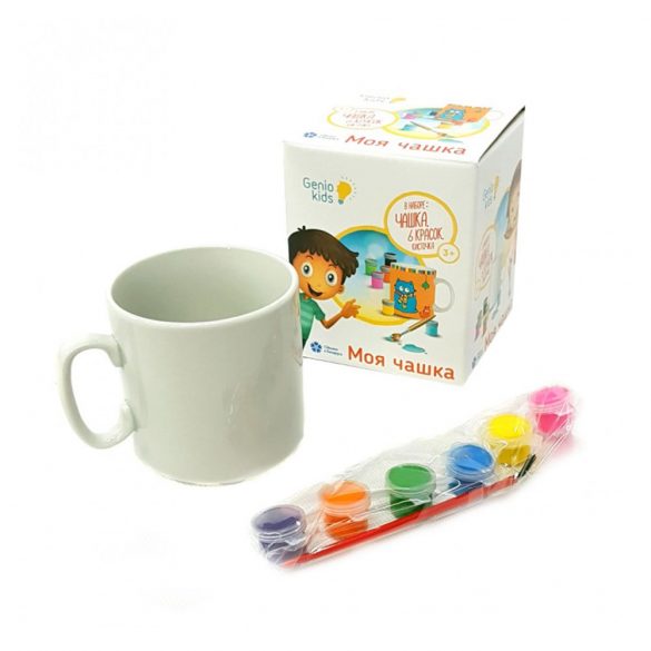 - Комплектация фарфоровая чашка 1 шт., акриловые краски - 6 цветов, кисточка 1 шт.